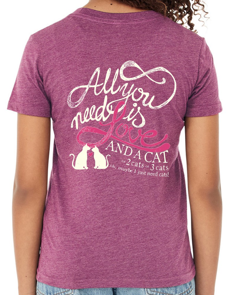 This “Love and a Cat” youth tee will be custom printed with the large design on the back, and the Guardian Veterinary logo printed on the front, left chest.