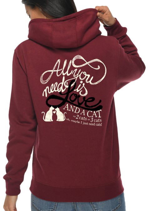 This “Love and a Dog” hoodie will be custom printed with the large design on the back, and the Guardian Veterinary logo printed on the front, left chest.
