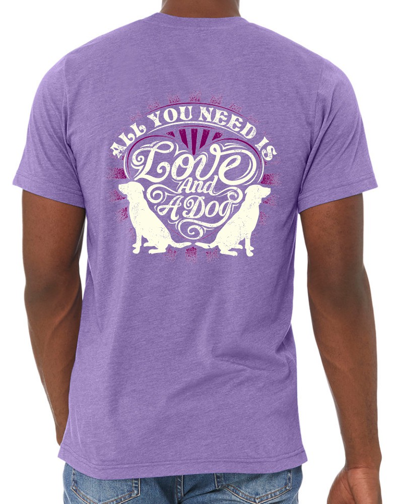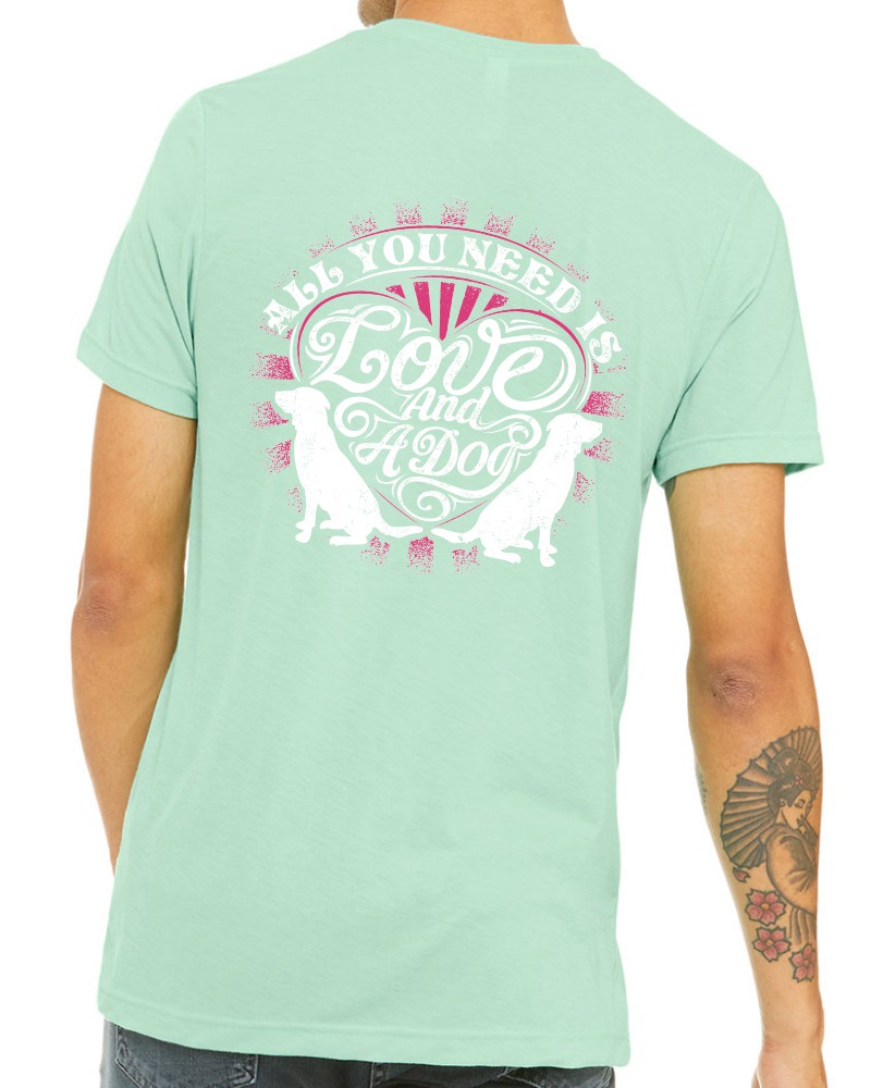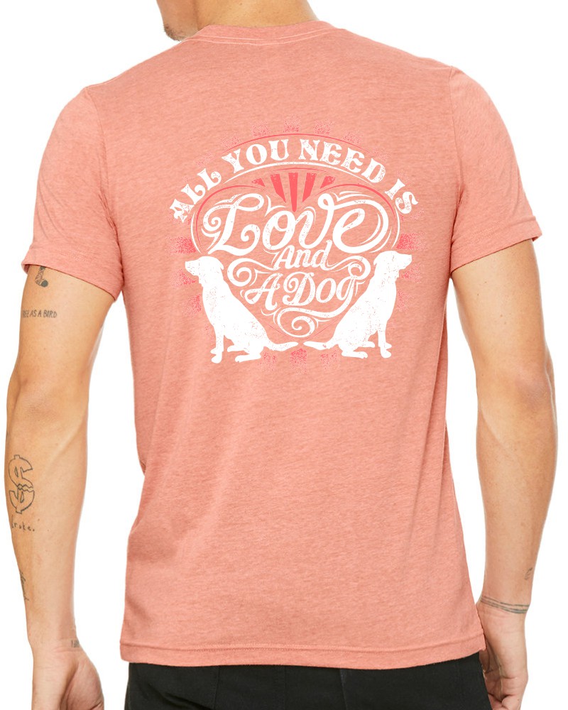 This “Love and a Dog” crewneck tee will be custom printed with the large design on the back, and the Guardian Veterinary logo printed on the front, left chest.