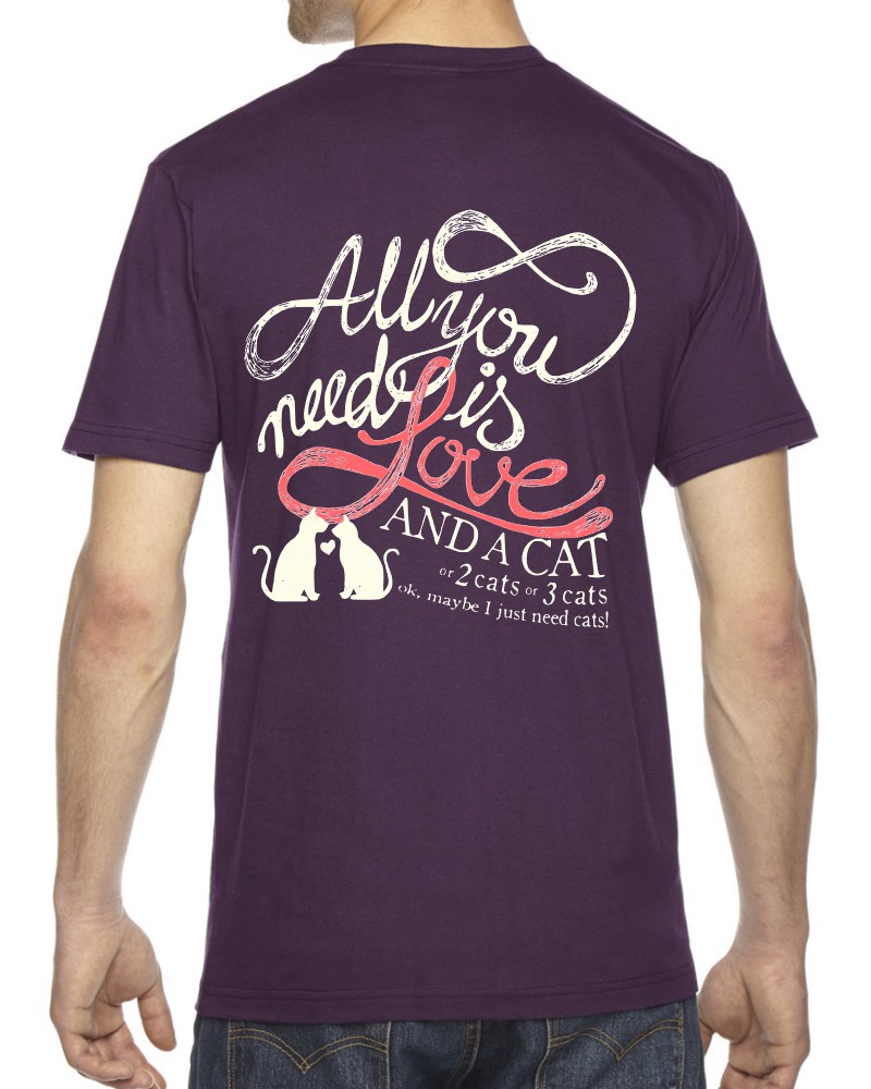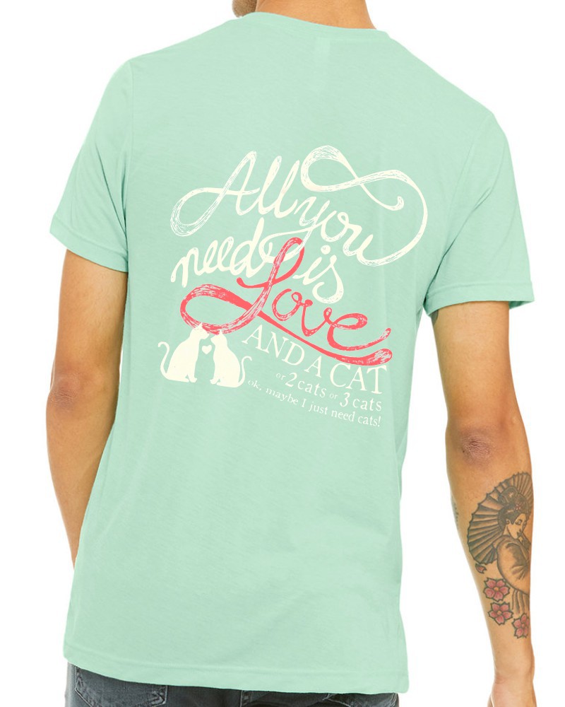 This “Love and a Cat” crewneck tee will be custom printed with the large design on the back, and the Guardian Veterinary logo printed on the front, left chest.