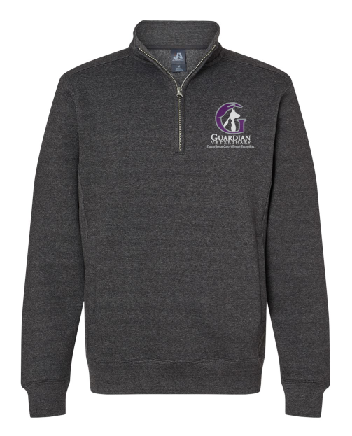 Show off your Guardian pride in this custom embroidered, heavyweight, quarter-zip Sweatshirt with side pockets. Available in Black or Charcoal with your choice of design on the back.