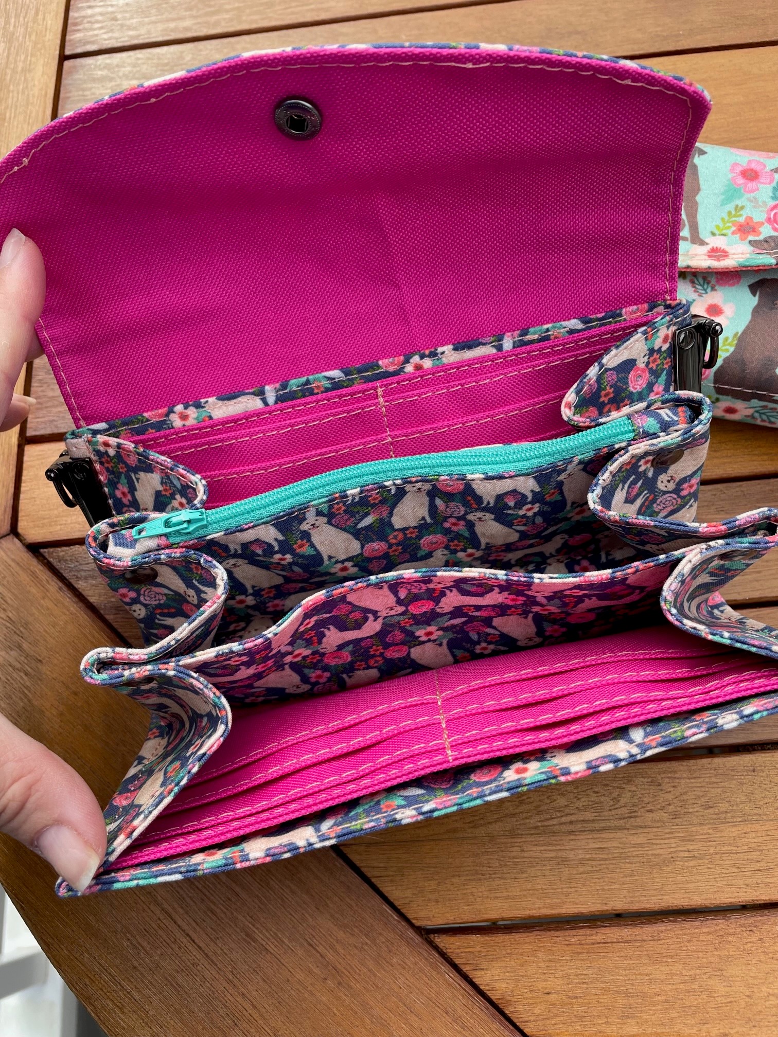This wallet can be constructed of high-quality, 100% cotton fabric, faux leather, waterproof canvas, or eco-friendly cork fabric. Materials are subject to change due to availability and may not resemble the exact color/pattern as show in the photos. We will contact you upon ordering to discuss your custom requests and will do our best to accommodate your design choices.