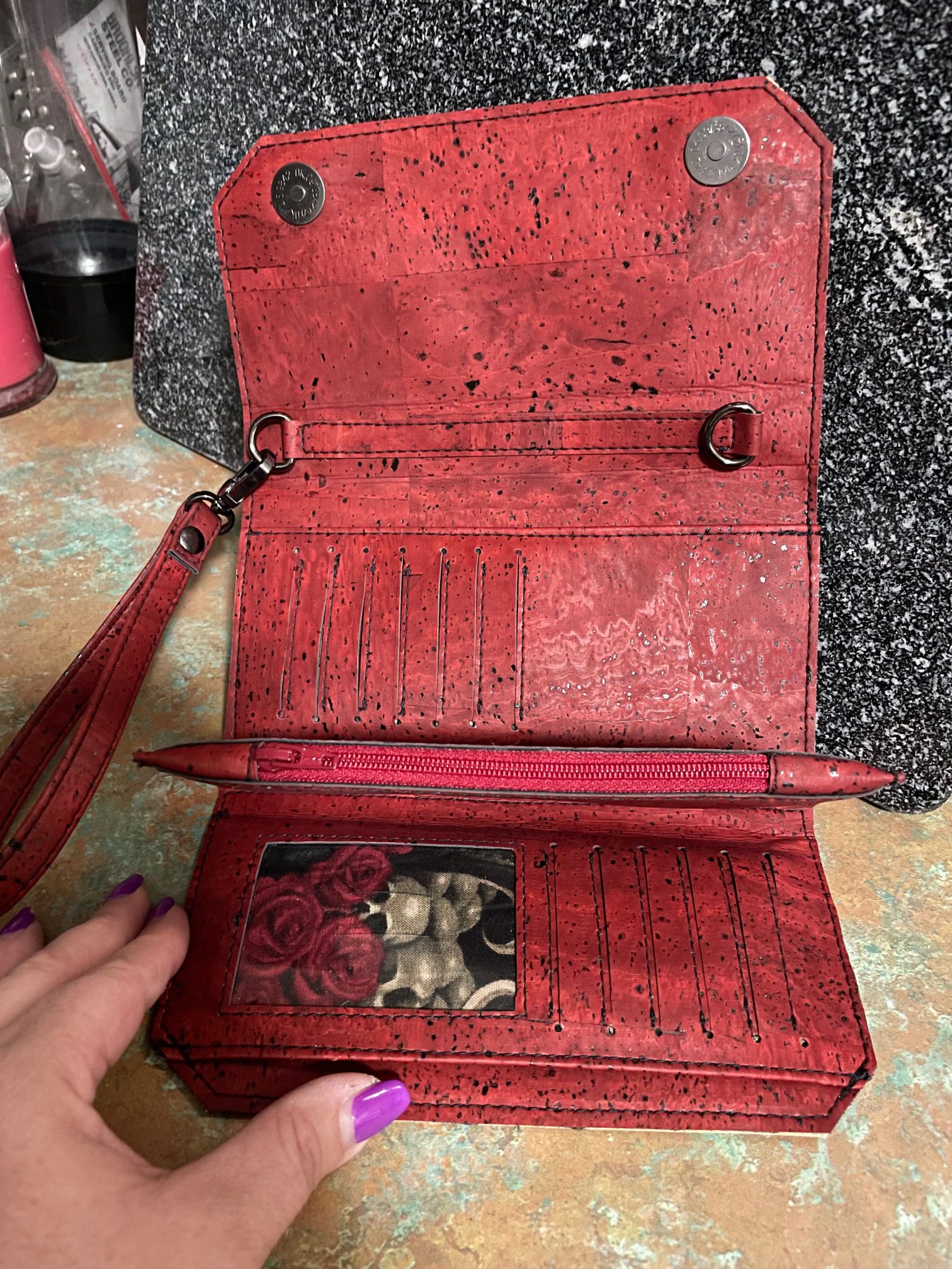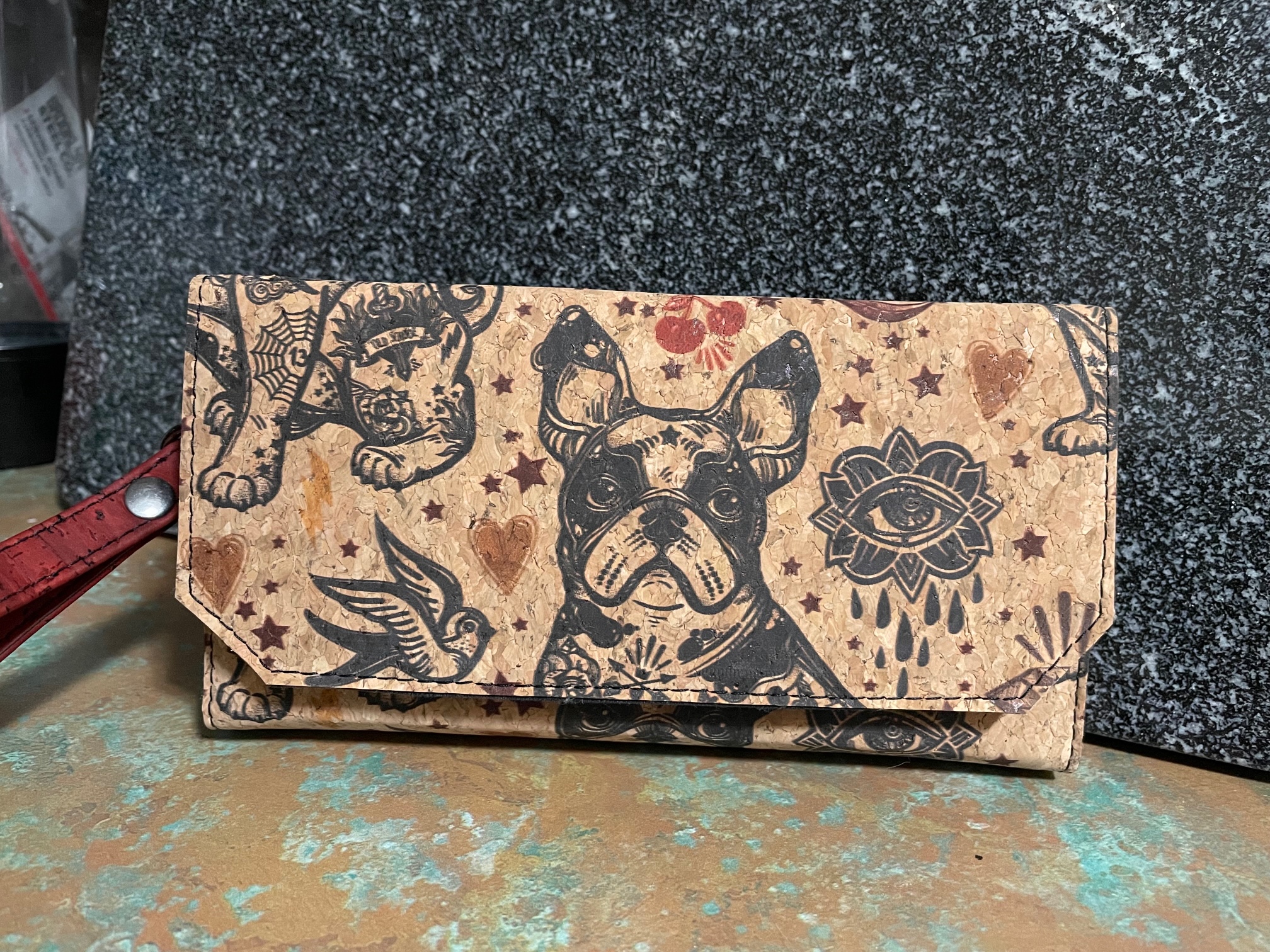 This wallet is constructed completely in eco-friendly, renewable cork fabric. Materials are subject to change due to availability and may not resemble the exact color/pattern as show in the photos. We will contact you upon ordering to discuss your custom requests and will do our best to accommodate your design choices.