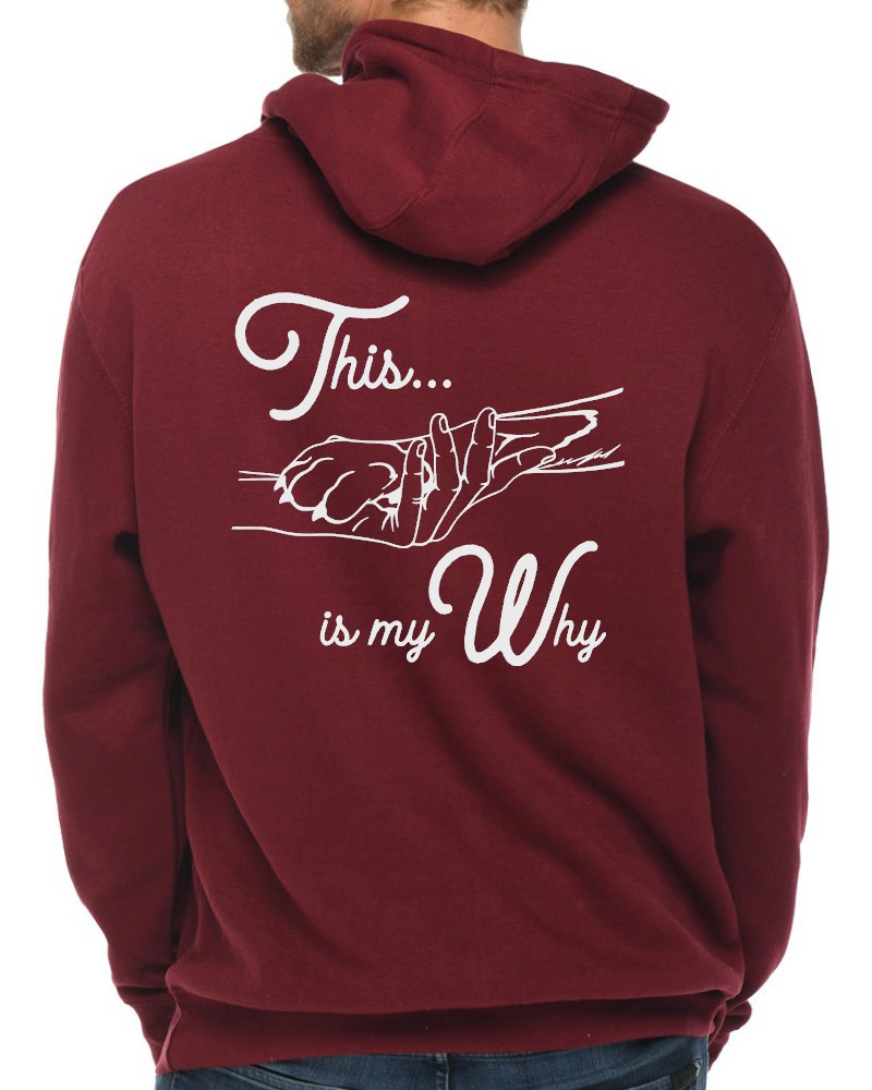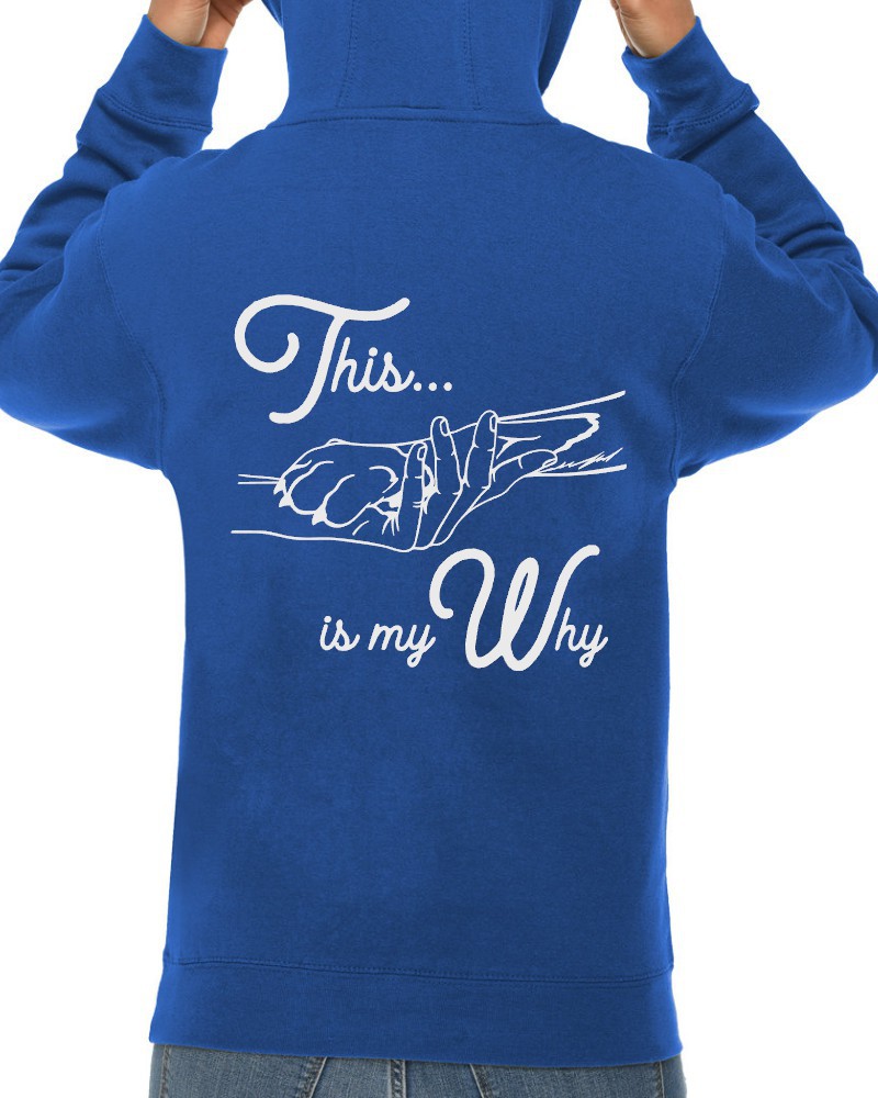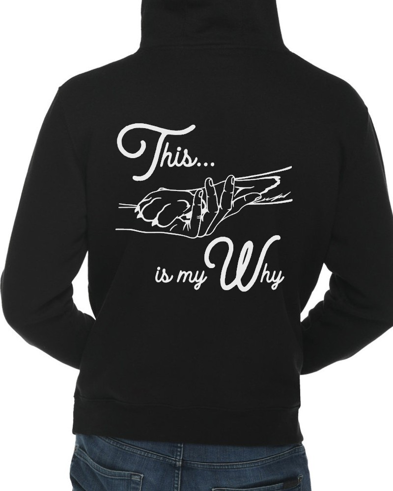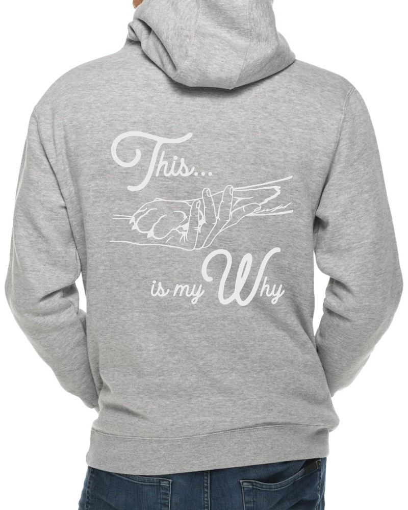 Our “This is My Why” hoodie will be custom printed with the large design on the back, and the Guardian Veterinary logo printed on the front, left chest.