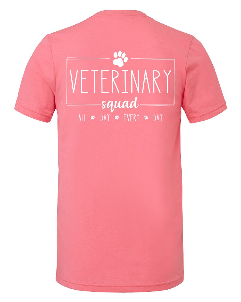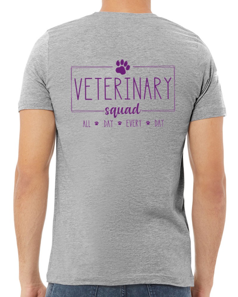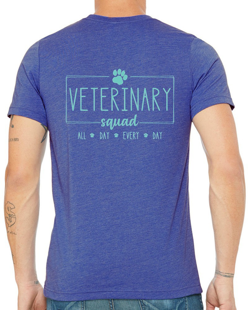This “Veterinary Squad” V-neck tee will be custom printed with the large design on the back, and the Guardian Veterinary logo printed on the front, left chest.